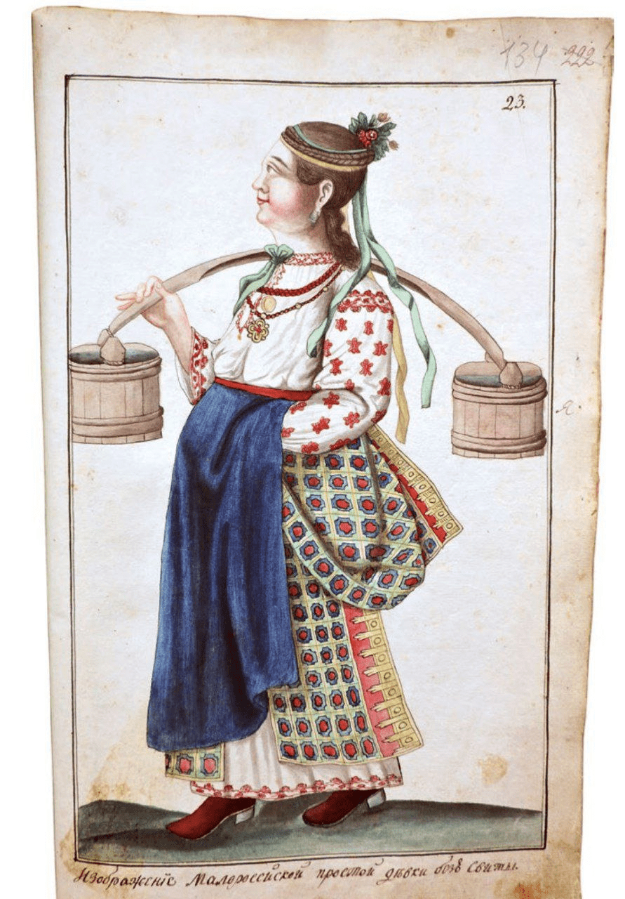 Рисунок украинской девушки добавлен в «Топографическое описание Черниговского наместничества». Конец XVIII века, автор неизвестен.