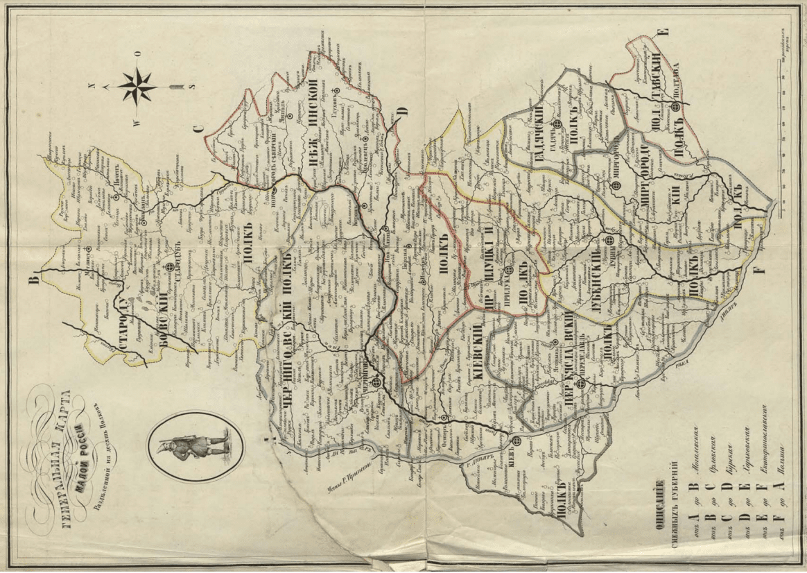 Карта малороссийских полков, то есть украинских. Сверху – Черниговский полк, откуда Афанасий Шафонский родом. Карта конца XVIII века
