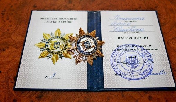 Нагрудный знак «За научные и образовательные достижения» — вручается с 2013 гг. (В течение 2007-2013 гг. — вручался нагрудный знак «За научные достижения») — поощрительная ведомственная награда Министерства образования и науки Украины. Имеет наивысшую степень среди отличий, введенных Министерством образования и науки Украины: благодарность; грамота; почетная грамота; нагрудный знак «Отличник образования»; нагрудный знак «Василий Сухомлинский»; нагрудный знак «За научные и образовательные достижения».