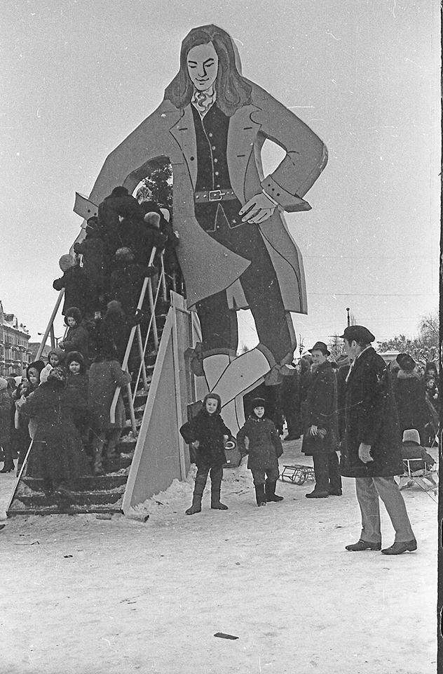Дерев’яна гірка у вигляді казкового персонажа Гуллівера. Центр Чернігова. Фото 1970-их років