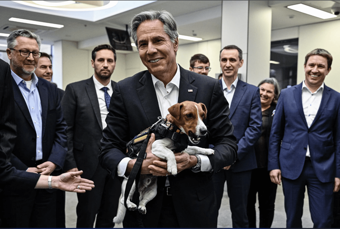 Патрон – найвідоміший пес в Україні. У нього навіть є свій Instagram аккаунт. В цьому акаунті з’явився пост, в якому Патрон «подякував» Блінкену за допомогу Україні і перепросив за те, що трохи пом’яв дипломату піджак.